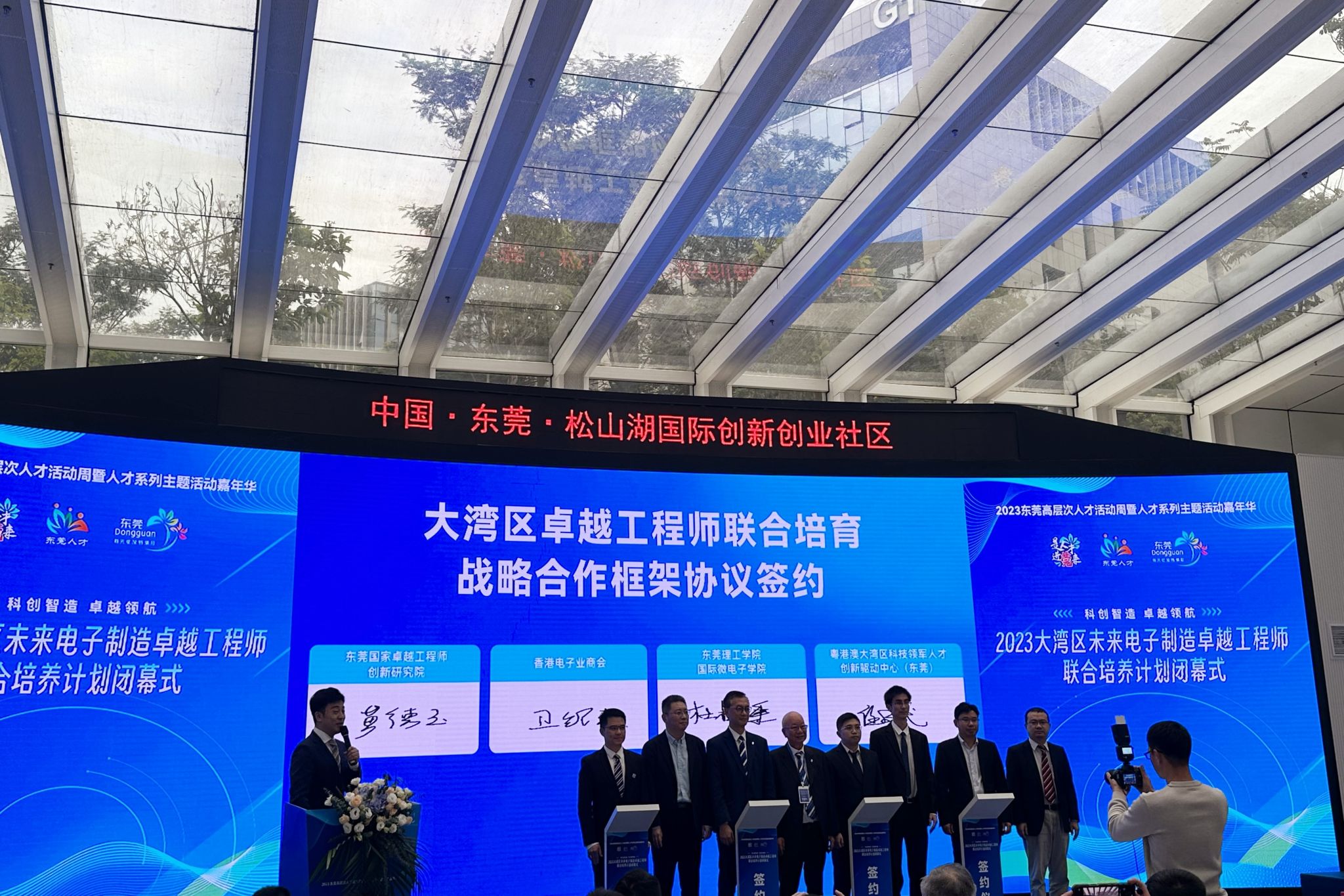 我院作为“2023大湾区未来电子制造卓越工程师联合培养计划”主要参与单位与东莞国家卓越工程师创新研究院、香港电子业商会、粤港澳大湾区科技领军人才创新驱动中心(东莞),共同签约了《大湾区卓越工程师联合培育战略合作框架协议》(以下简称“协议”)。