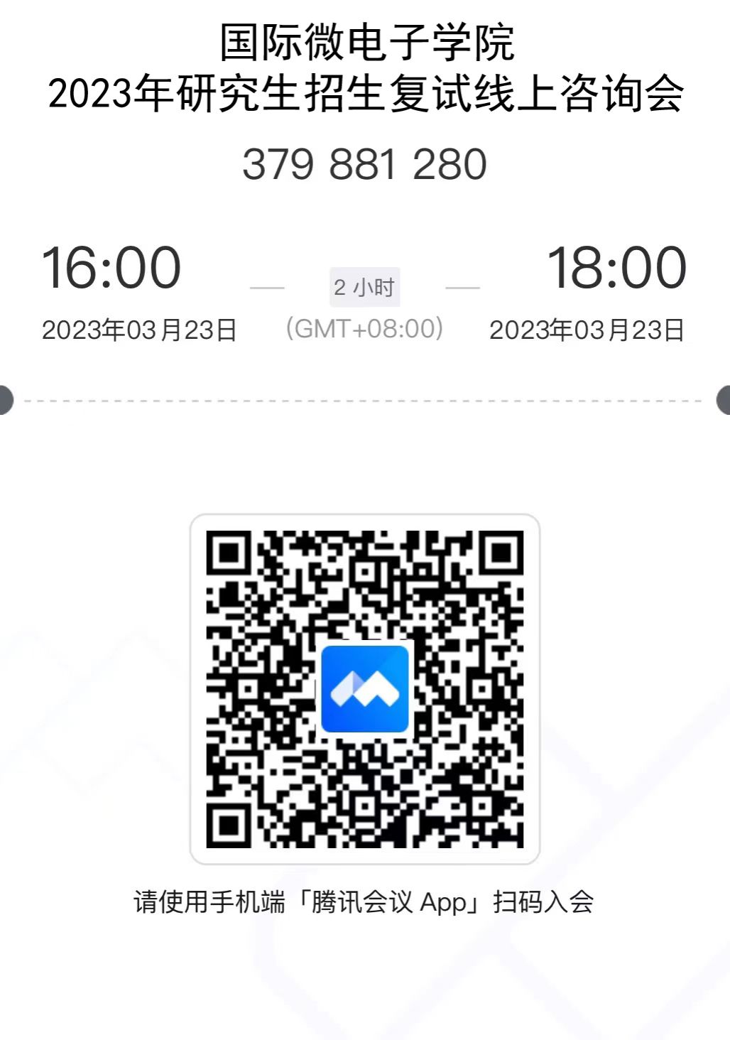 为帮助广大研究生考生更好地了解我院研究生教育、招生政策与相关要求,国际微电子学院将于3月23日举行2023年研究生招生复试线上咨询会,欢迎各位同学参与本次咨询会。