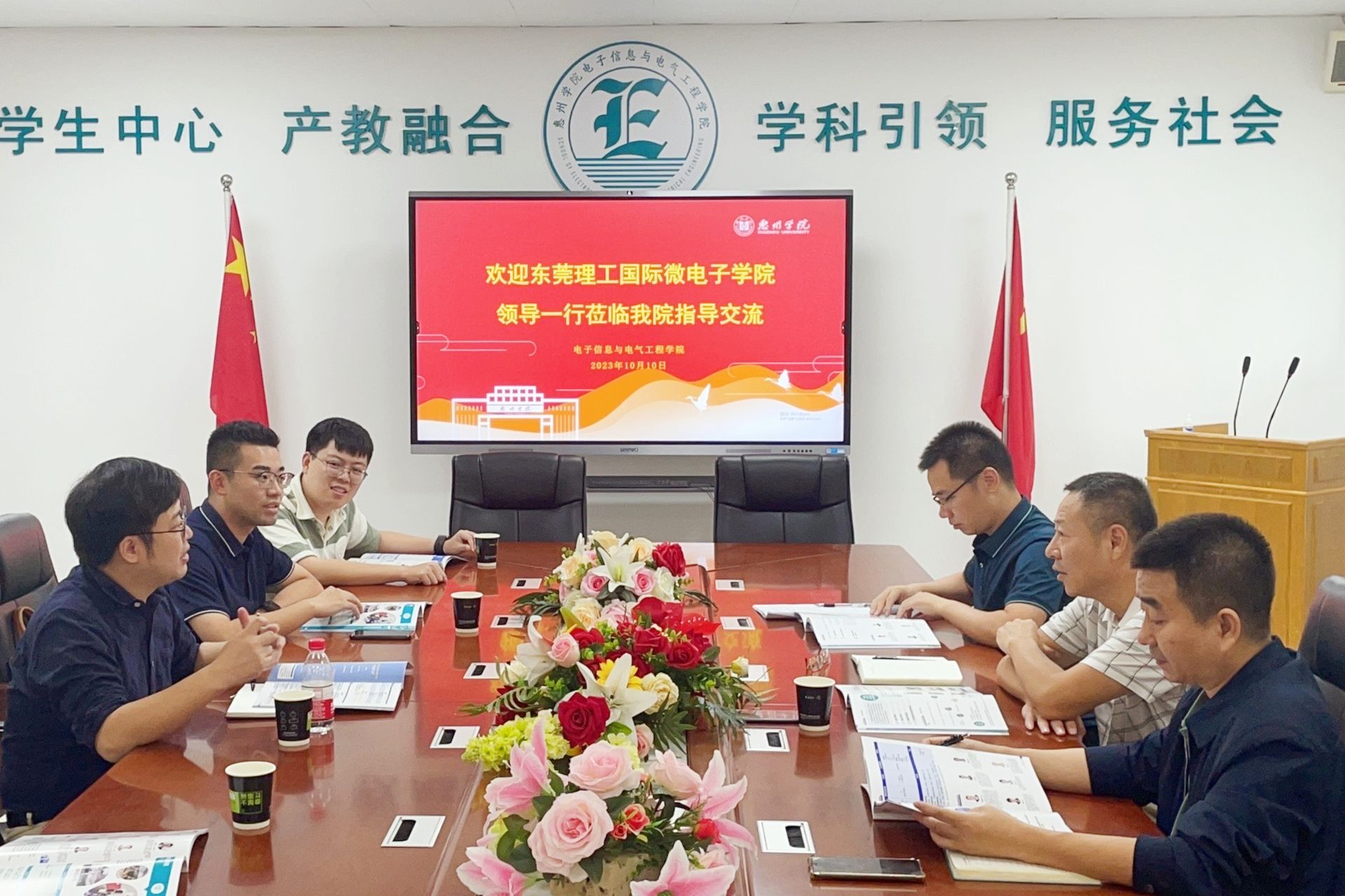 交流会上,学院副院长张光旻首先介绍了yl23411永利集团国际微电子学院的整体情况,并对师资队伍、学科方向、硕士点情况、研究生培养以及2024年的研究生招生宣传工作安排等方面进行了介绍。惠州学院电子信息与电气工程学院党总支副书记段延喜从专业方向、科研团队、科研成果、师资队伍和学生培养等多方面介绍了学院情况,副院长闵国新,副院长龙达峰参加交流会。国际微电子学院青年教师罗安信、招生辅导员贾彬参加本次交流会。