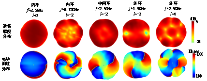 涡旋电磁波具有多OAM模式和螺旋形相位波前特性,其对目标的照射效果相当于平面电磁波从多个连续角度的叠加,将其应用于雷达探测与成像,可以带来探测和成像精度的显著提升。围绕涡旋电磁波辐射天线及其在航空航天复合材料无损检测的应用研究等方面,团队做了如下工作: