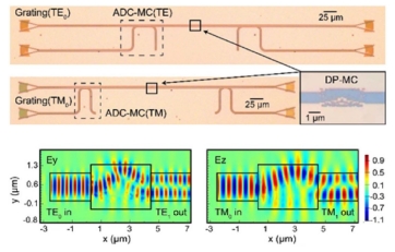 2020年提出了一种基于类二维码硅结构的紧凑型多通道模式变换器。通过实施逆向设计方法,引入专门的评价系数和适当的结构约束,可以在两个偏振上实现模式转换。实现从TE0模式到TE1模式,以及从TM0模式到TM1模式的平行模式转换过程。其面积为4×1.6 μm。两个偏振的插入损耗(ILs)都低于2.3 dB,在1525-1565 nm 的波长范围内,串扰低于-11.5 dB。