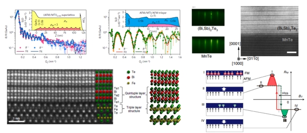 该方向聚焦于利用分子束外延技术,在原子层面设计和构建“拓扑绝缘体/磁性材料/超导体”等多元素异质结,通过精准的“界面工程”人工创制出在单一材料中无法实现的新物态与新功能。其科学背景是界面处强烈的邻近效应(如磁近邻、超导邻近)可以打破对称性,诱导出强烈的自旋-轨道耦合、磁交换相互作用,从而成为衍生量子反常霍尔效应、拓扑超导等拓扑量子态的摇篮。团队的核心科学问题是理解和掌控界面的原子结构、电子重构与耦合强度,从而实现对异质结整体量子态的有效设计与调控。我们在反铁磁异质结的交换偏置效应、界面诱导超导等方面形成了特色优势。展望未来,我们将探索更广泛的材料组合(如与反铁磁、多铁性、高迁移率半导体结合),致力于揭示界面量子态的新奇物理,并实现对外场(光、电、磁)具有灵敏响应的智能量子界面,为开发新型量子传感器和逻辑单元奠定基础。