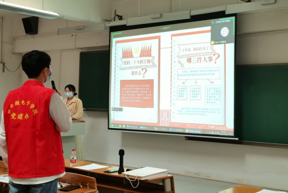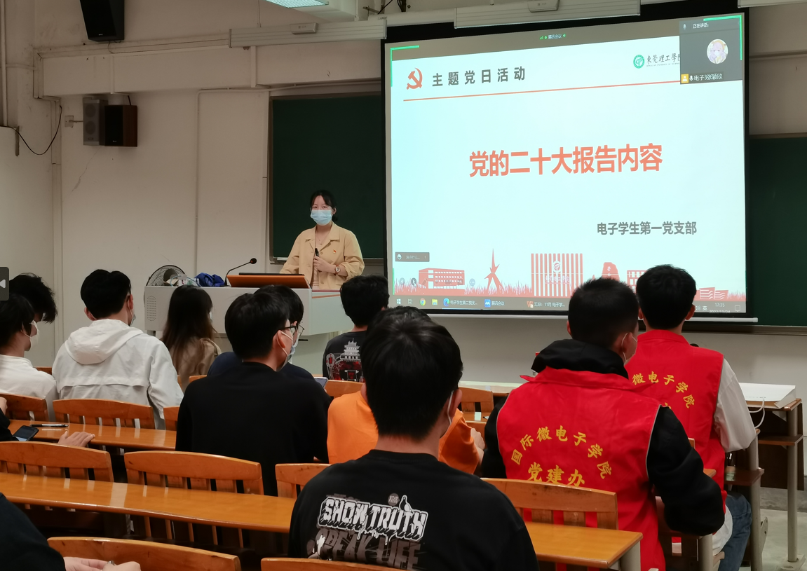 近日,国际微电子学院电子学生第一党支部开展主题党日活动。支部书记陈亚莉主持,支部全体党员参加。活动主题为学习党的二十大报告内容。活动方式为书记领学和知识问答。