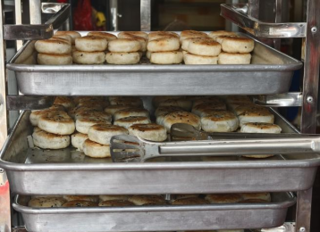 和安村的非遗美食,饼皮经多层起酥工艺制作,酥脆掉渣,内馅是细腻如沙的绿豆泥,入口即化,醇厚的味道中满是老手艺的沉淀。