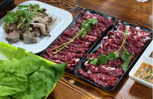芝记牛肉火锅在洪阳很受欢迎,牛肉现宰现切,鲜嫩爽滑,牛骨清汤底凸显本味,配上特制沙茶酱,吊龙、胸口油等部位各有风味,吃的就是新鲜。