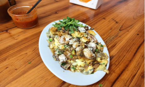 德安里附近的人气小摊,方文彬师傅以古法煎制:新鲜生蚝裹上薯粉与鸡蛋,在热油中快速翻动,边缘焦脆,内里鲜嫩,蘸上鱼露后鲜甜更甚,83岁老主顾数十年如一日的坚守,印证了其味道的传承力。