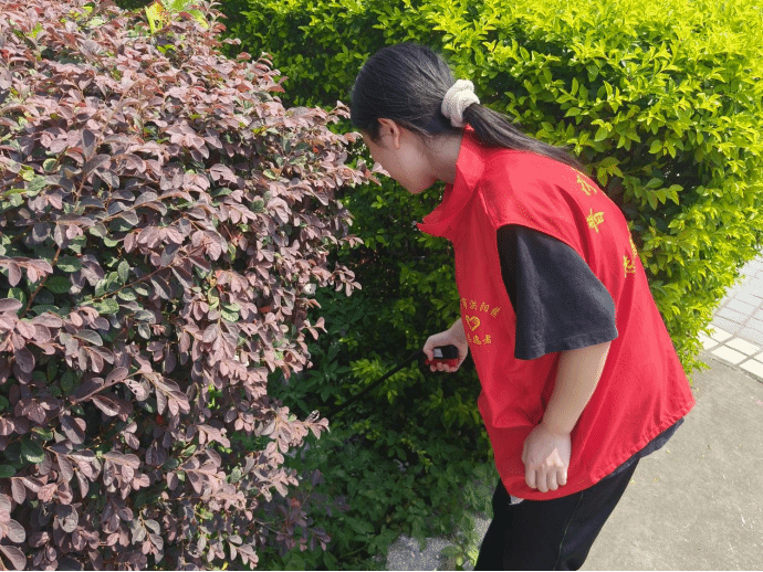 7月10日,实践队奔赴居民楼周边公园,开展花坛修整。队员们清理杂物、拔除杂草、修剪枝叶,烈日下热情不减。原本杂乱的花坛逐渐恢复整洁,不仅优化社区景观,更彰显实践队服务基层的责任担当,以行动获得居民认可,为社区添注生态活力。