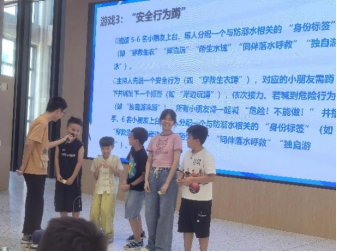 预热宣传后,防溺水安全讲座在教室正式开始。讲座通过PPT系统讲解溺水事故成因、水中自救技巧、他人救援规范及常见误区,结合真实案例增强说服力。讲座尾声,互动游戏接连展开。知识问答环节,“发现溺水者该先呼救还是下水?”等问题抛出后,孩子们踊跃抢答,答对者获赠糖果、小饼干;击鼓传花停在谁手中,需说出一项防溺水常识,通关可领零食与玩具;你画我猜中,“救生衣”“岸边救援”等关键词被画出,猜对家庭得薯片小包与拼图;幸运转盘转动时,孩子们紧盯指针,转到“零食”“玩偶”区域便欢呼着领取奖励。轻松互动中,安全知识入脑入心,场外宣传咨询同步进行,确保更多人获取信息。