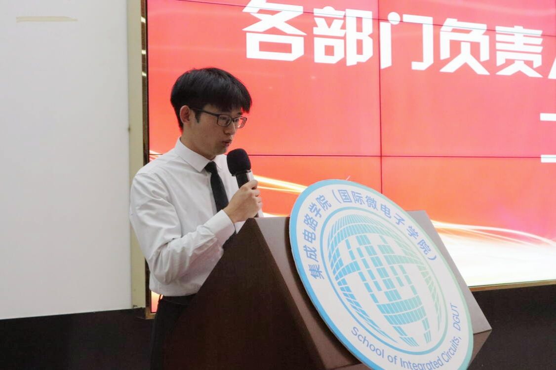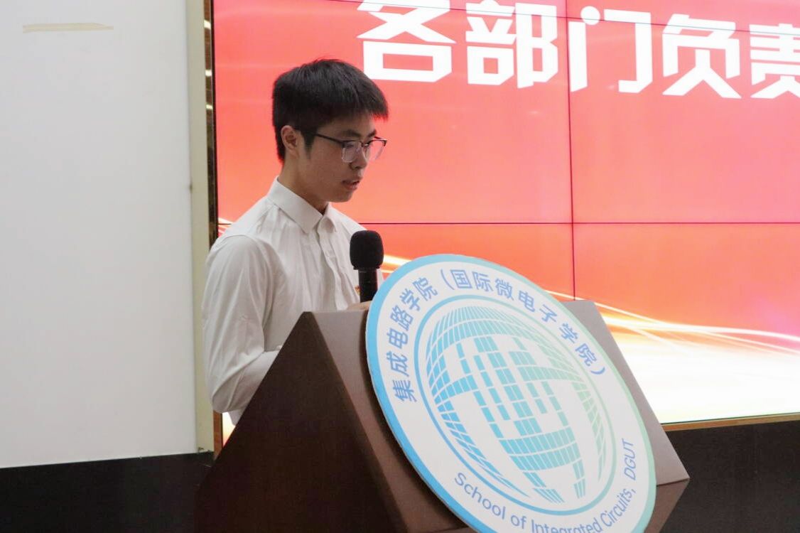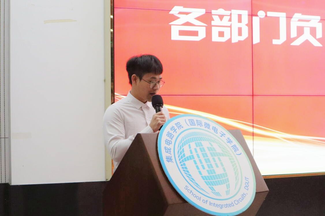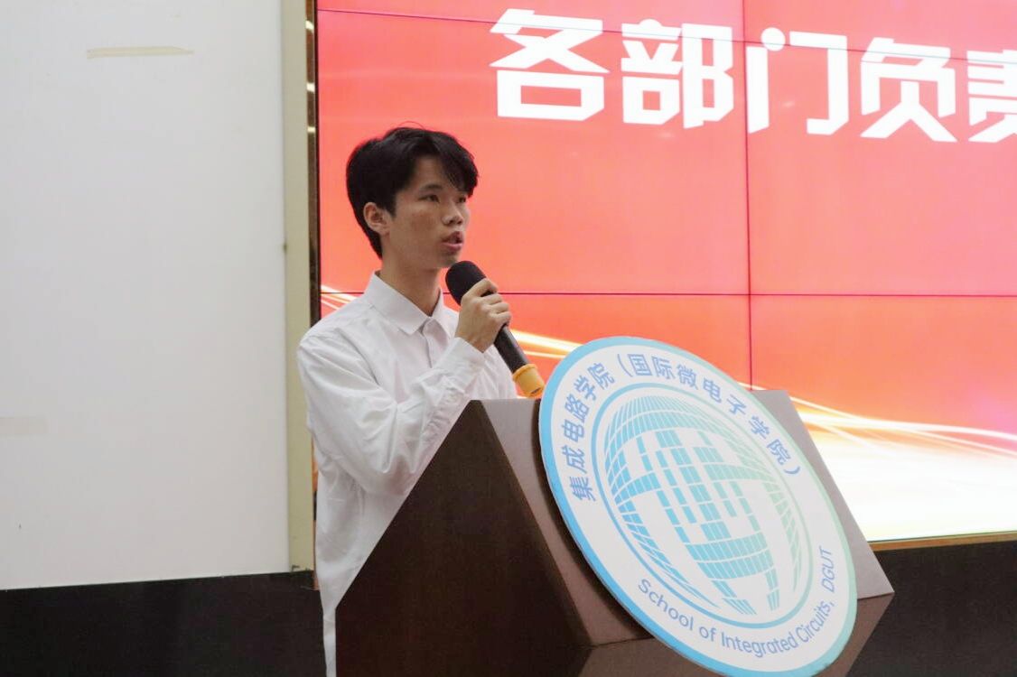 团委学生副书记谭尧文在发言中首先分享了他在团学工作中的成长与收获。他同时强调,团学组织是连接学生与学院的重要桥梁,始终坚持以服务同学为根本宗旨。展望未来,他期待全体团学成员能够成为彼此成长道路上的挚友与并肩作战的战友,继续保持积极投入的工作态度,团结一致,共同为团学事业的长远发展贡献青春力量。
