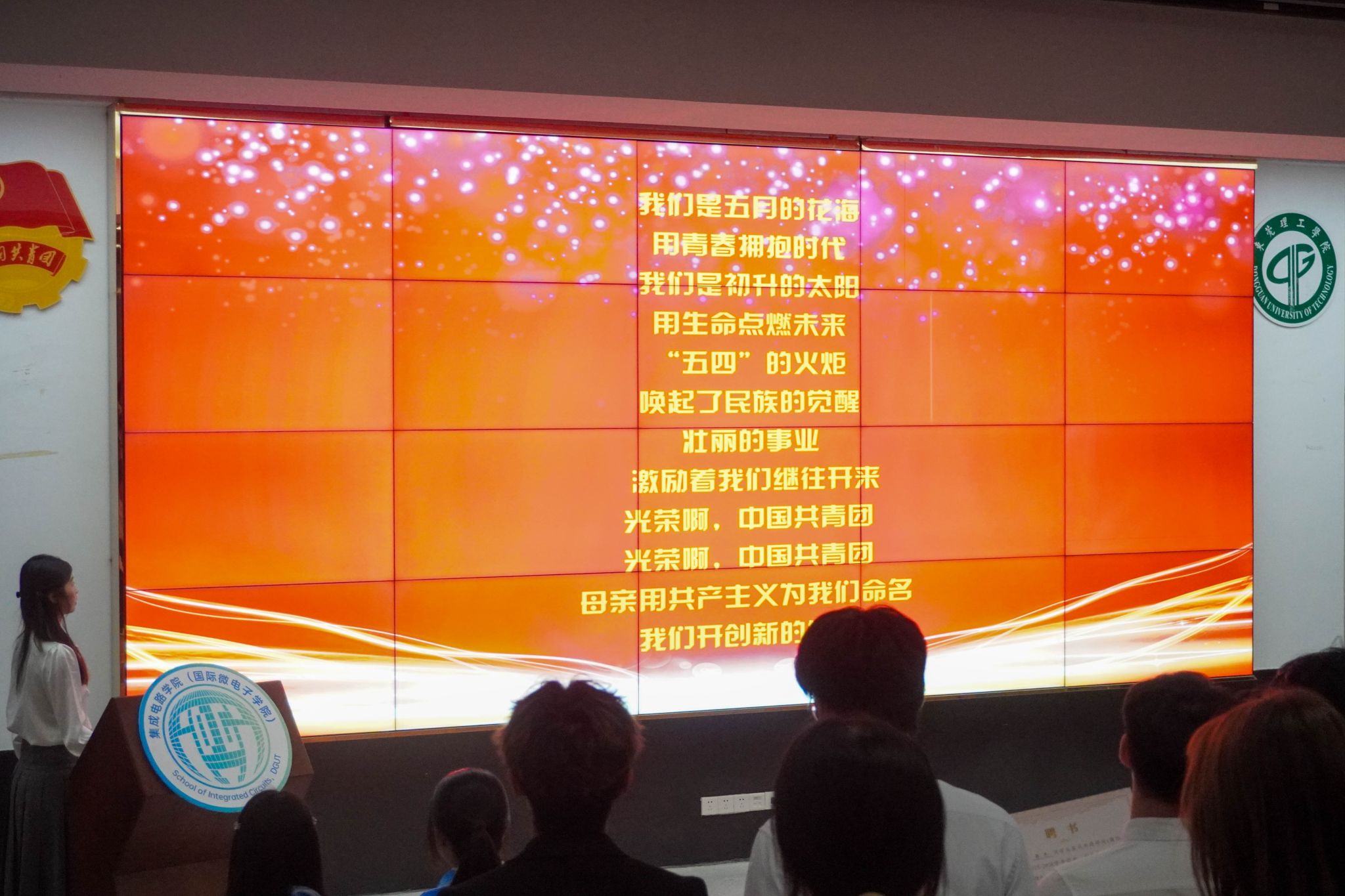 大会第七项议程,全体成员起立,奏唱中国共青团团歌《光荣啊,中国共青团》。