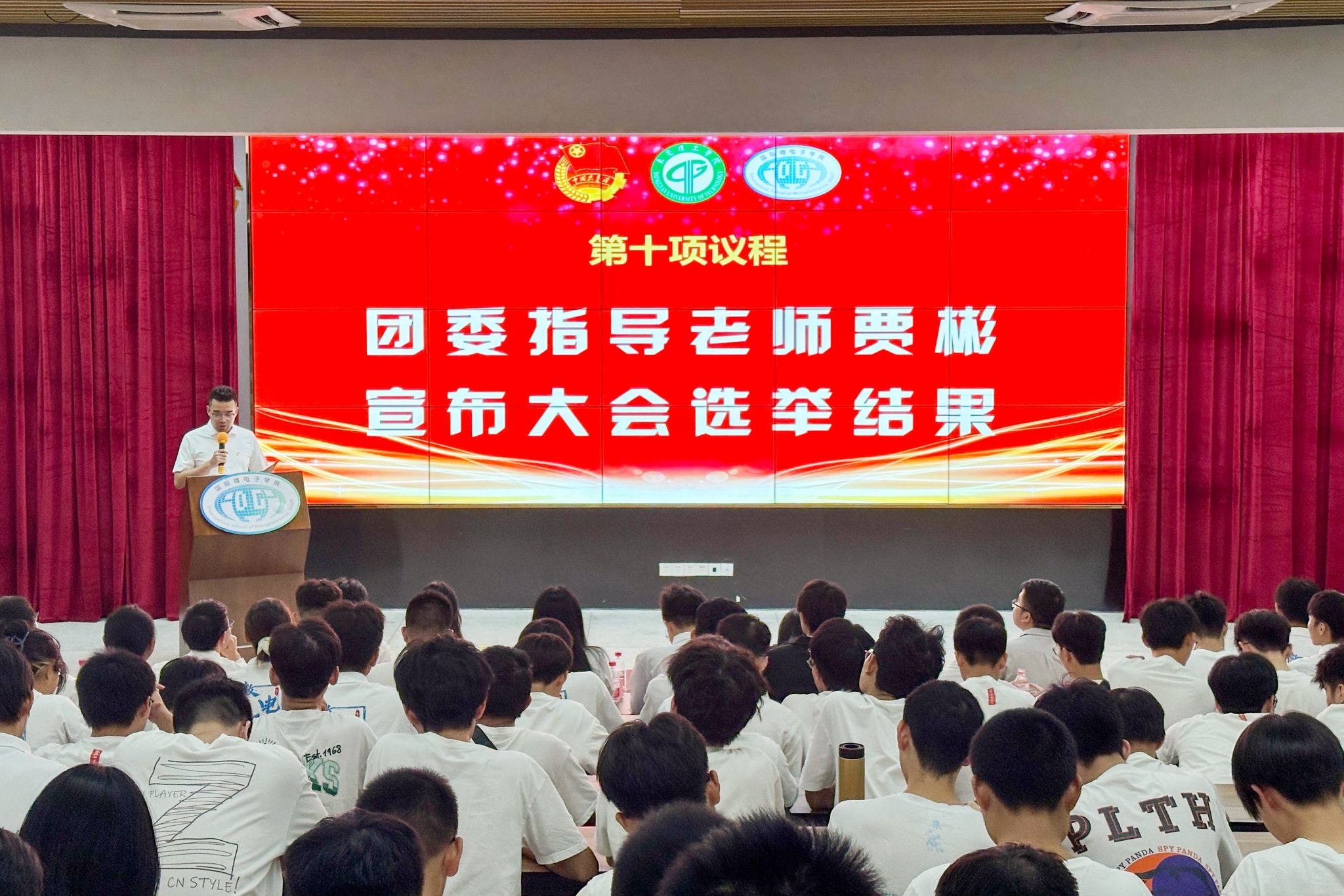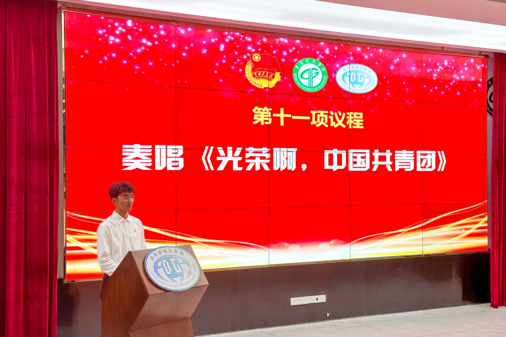 国际微电子学院第二次学生代表大会在《光荣啊!中国共青团》的旋律中顺利闭幕。