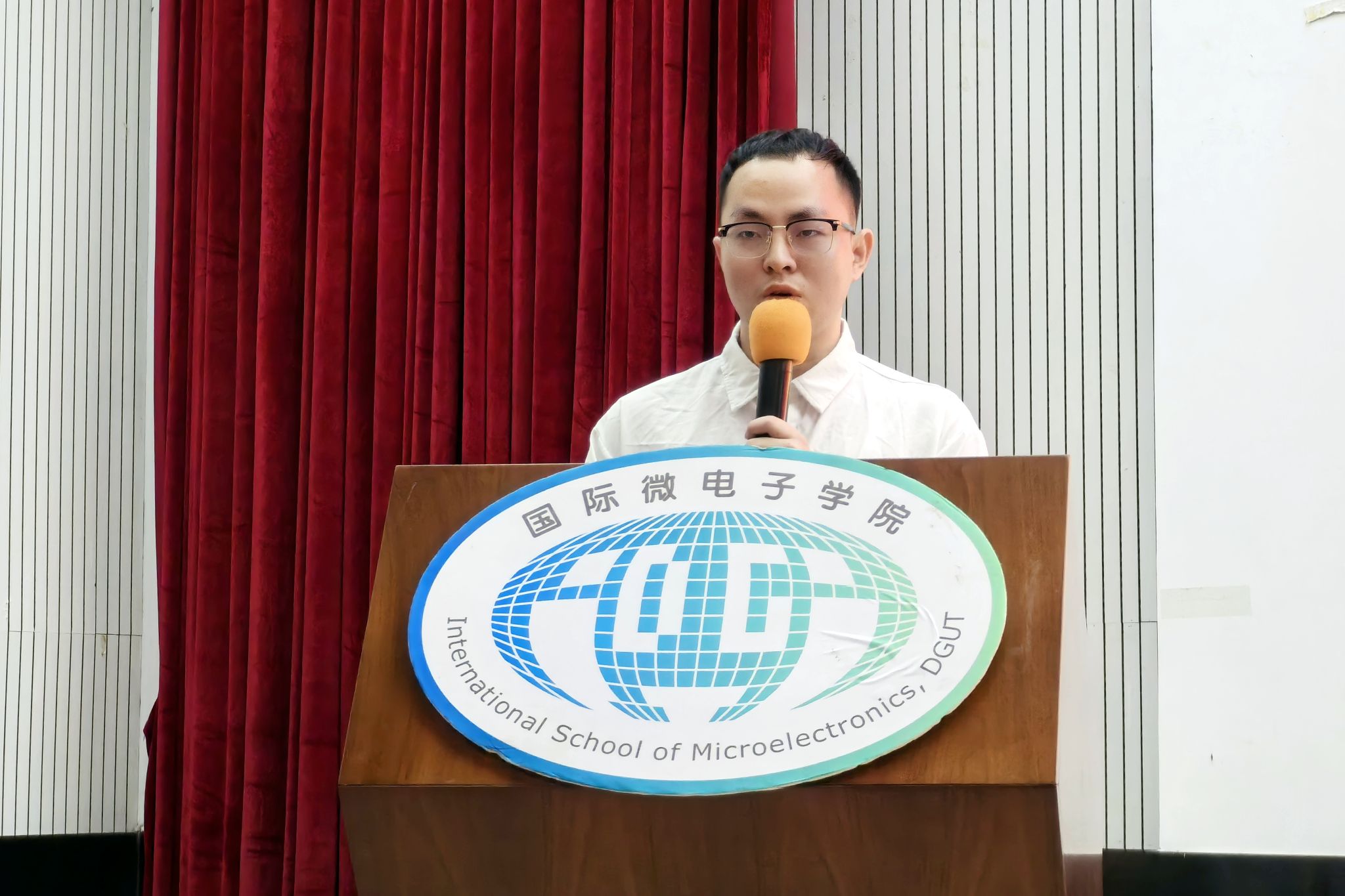 大会听取并审议《国际微电子学院第二届学生会工作报告》,第二届院学生会主席团成员林梓鹏代表第二届学生会做工作报告。