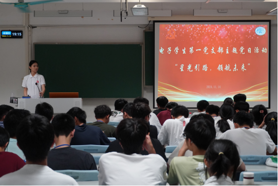 全面贯彻党的教育方针,落实立德树人根本任务,帮助学生合理规划大学生涯,促进学生全面发展,11月14日,电子学生第一党支部组织开展“星光引路,领航未来”主题党日活动,邀请了孟延昭作考研经验分享、吕炳飞作就业经验分享、黄嘉彬作科研经验分享,旨在加深学生在考研升学、就业规划以及科研成长方面的了解电子学生第一党支部书记陈亚莉和全体党员、入党积极分子参加。