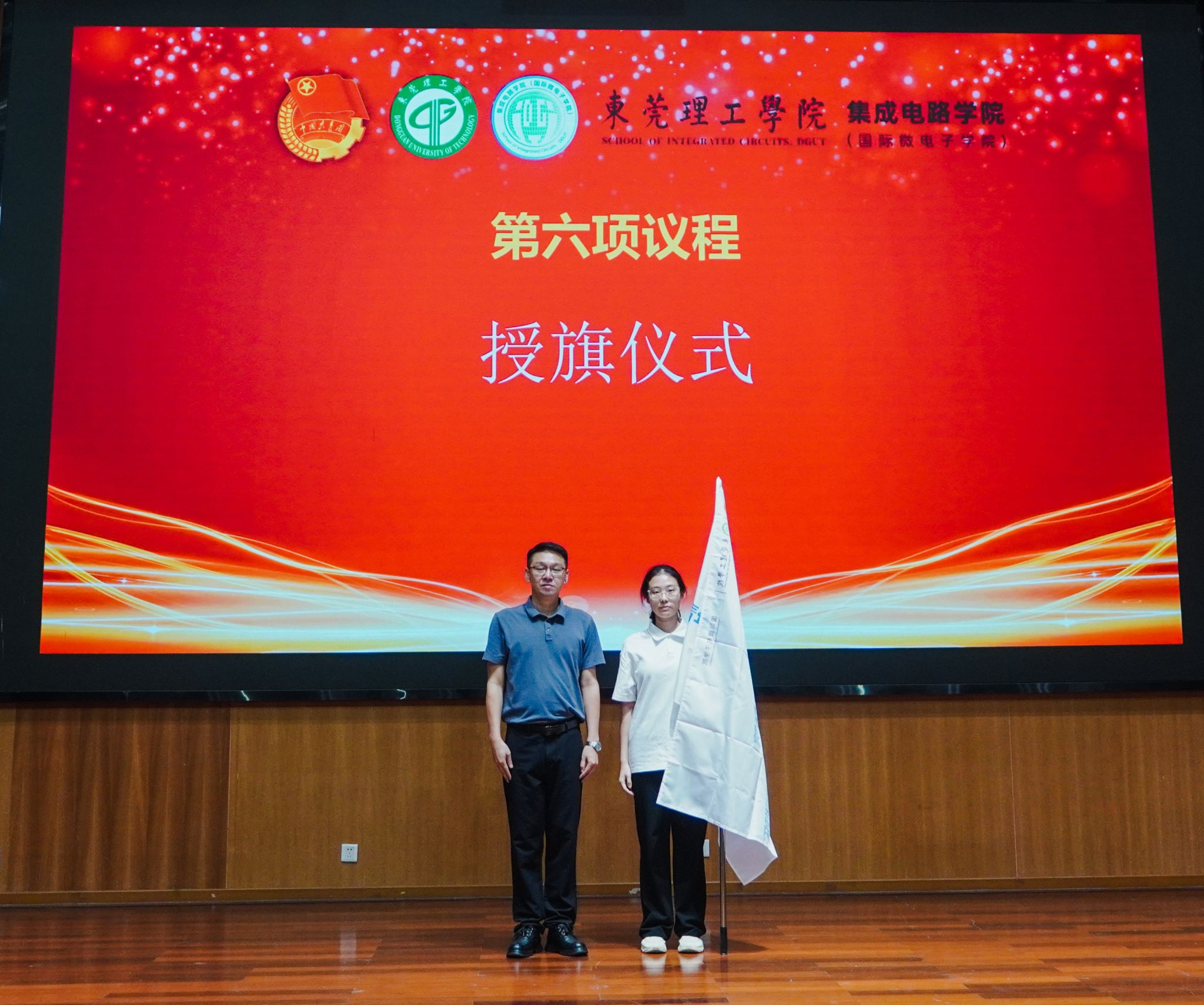 议程六:yl23411永利集团党委副书记翁炎泉老师为我院第三期青马班学员代表授旗