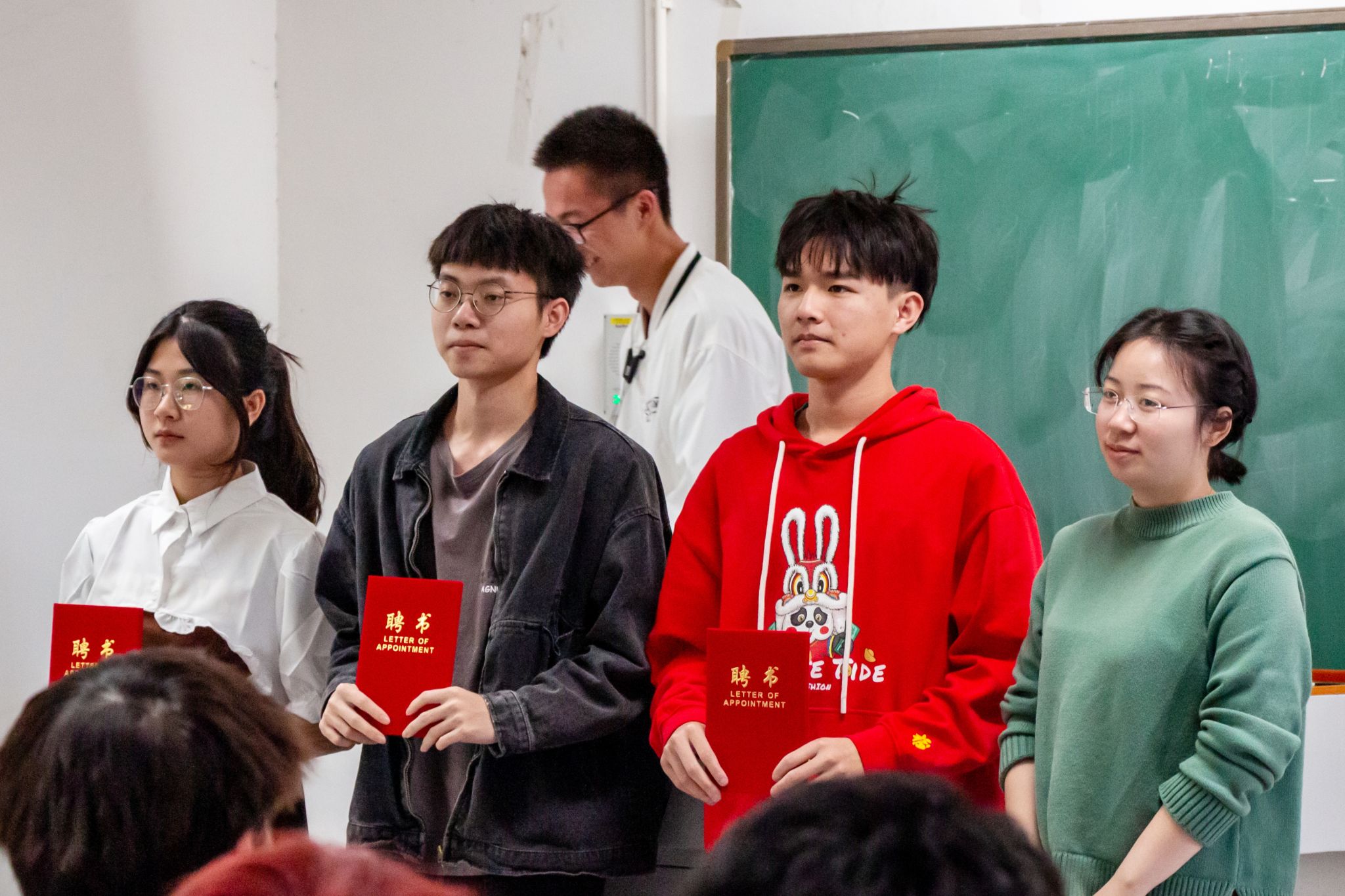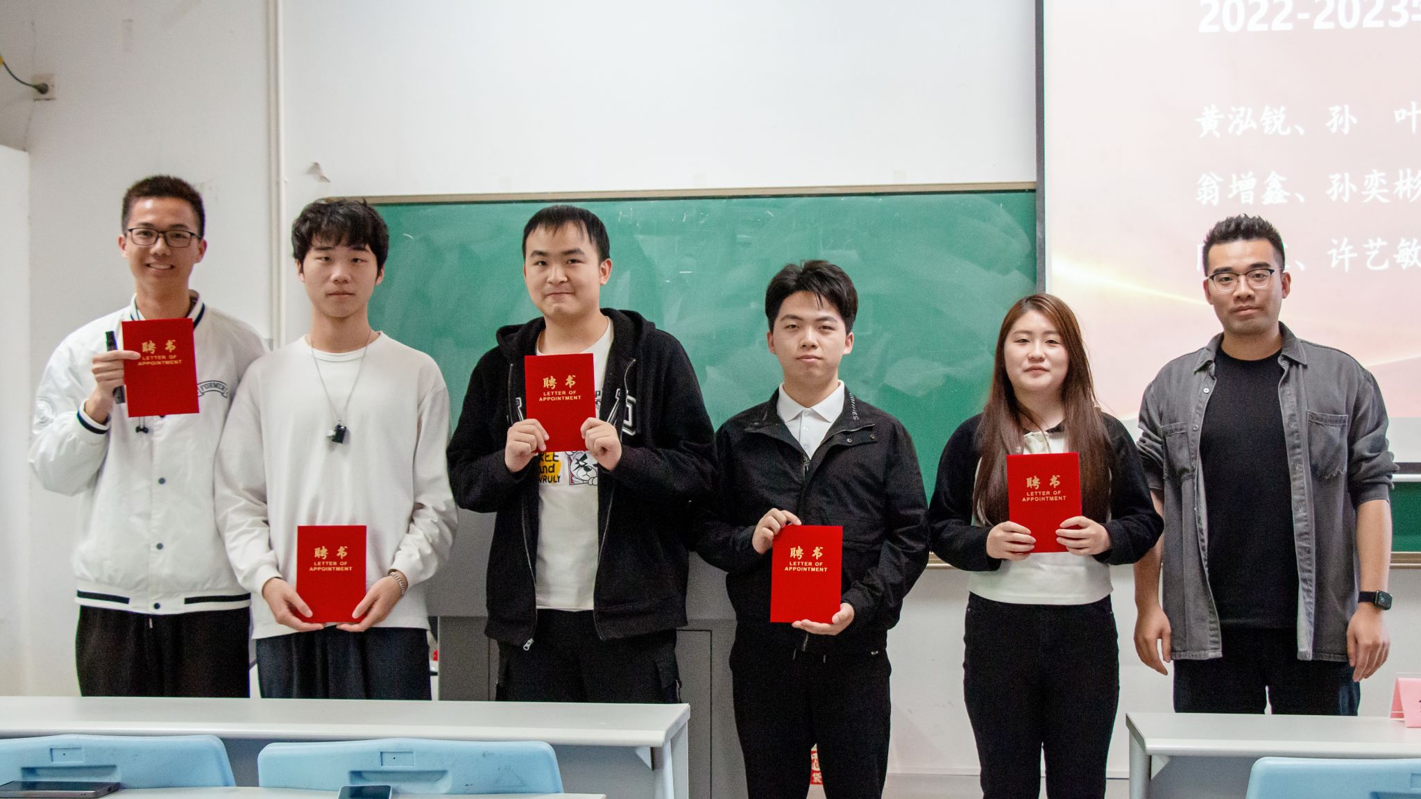 会议最后,主持人宣读了国际微电子学院2022-2023学年度辅导员助理聘任名单,由陈亚莉老师和贾彬老师为辅导员助理代表颁发了聘书。