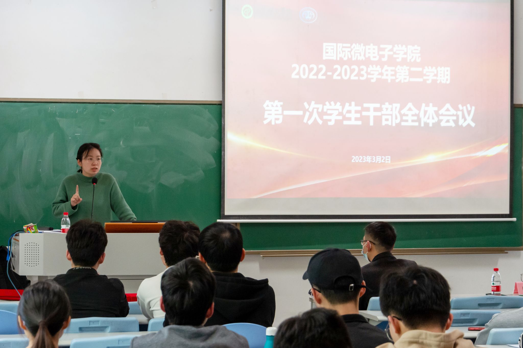 为加强学生干部管理,充分调动学生干部的积极性,提升学生干部工作能力和水平,发挥学生干部在服务学生和沟通老师的作用,2023年3月2日下午,国际微电子学院在教学6号楼A区202多媒体教室召开2022-2023学年第二学期第一次学生干部全体会议。学院党委副书记翁炎泉、辅导员陈亚莉、贾彬、教务秘书康璐俐、辅导员助理、各班班委及团学组织各部门负责人参加了本次会议。