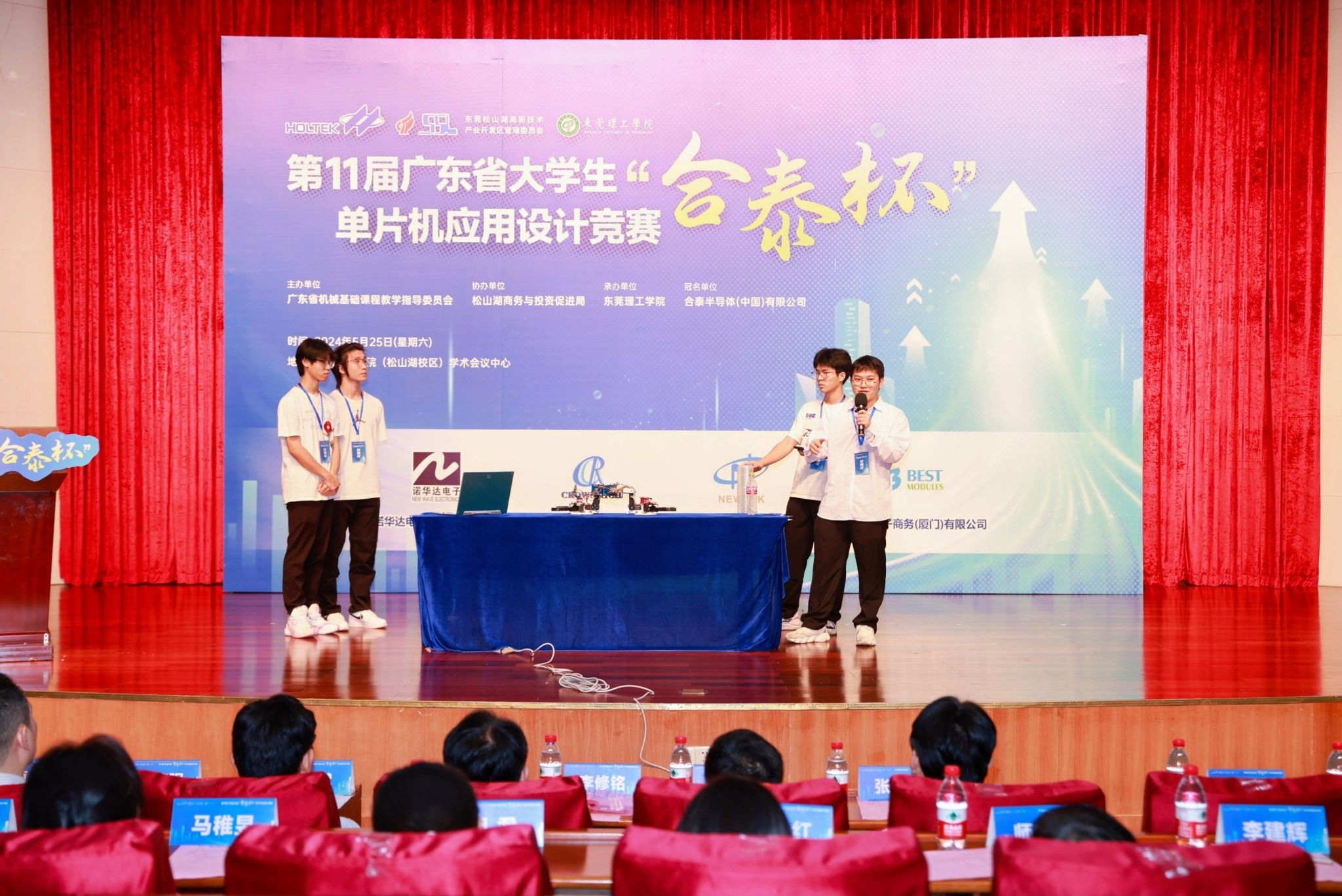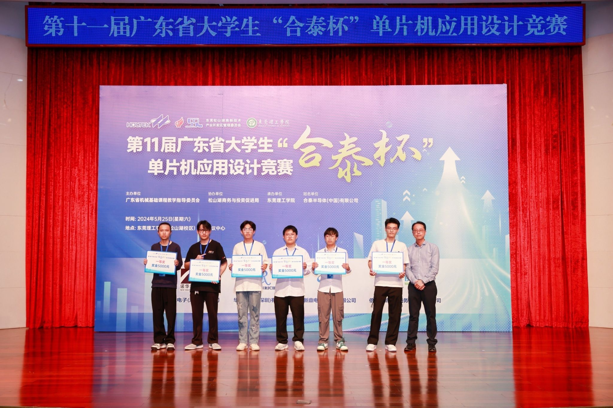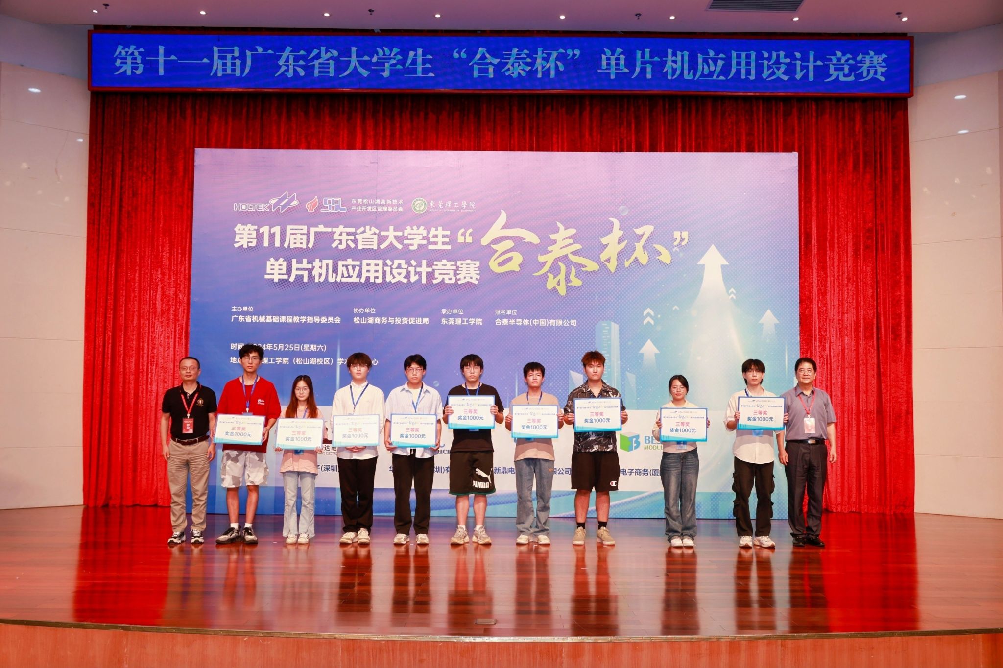 以科技创新为新质生产力蓄势赋能。2024年5月25日,由广东省本科高校机械基础课程教学指导委员会主办,yl23411永利集团承办,东莞松山湖商务与投资促进局协办,合泰半导体(中国)有限公司冠名,诺华达电子(深圳)有限公司、华瑞电子(深圳)有限公司、新鼎电子(深圳)有限公司、倍易创新电子商务(厦门)有限公司赞助的第十一届广东省大学生“合泰杯”单片机应用设计竞赛决赛在yl23411永利集团松山湖校区学术会议中心顺利举办。