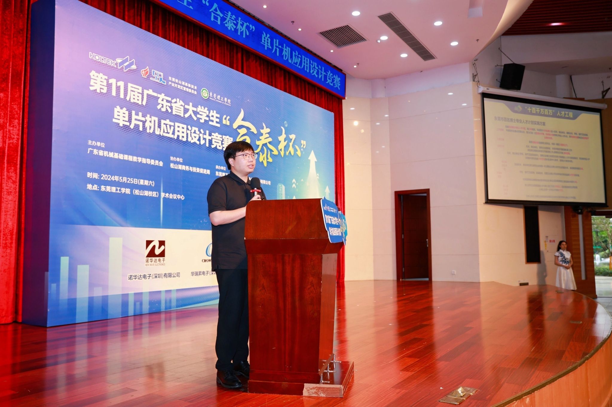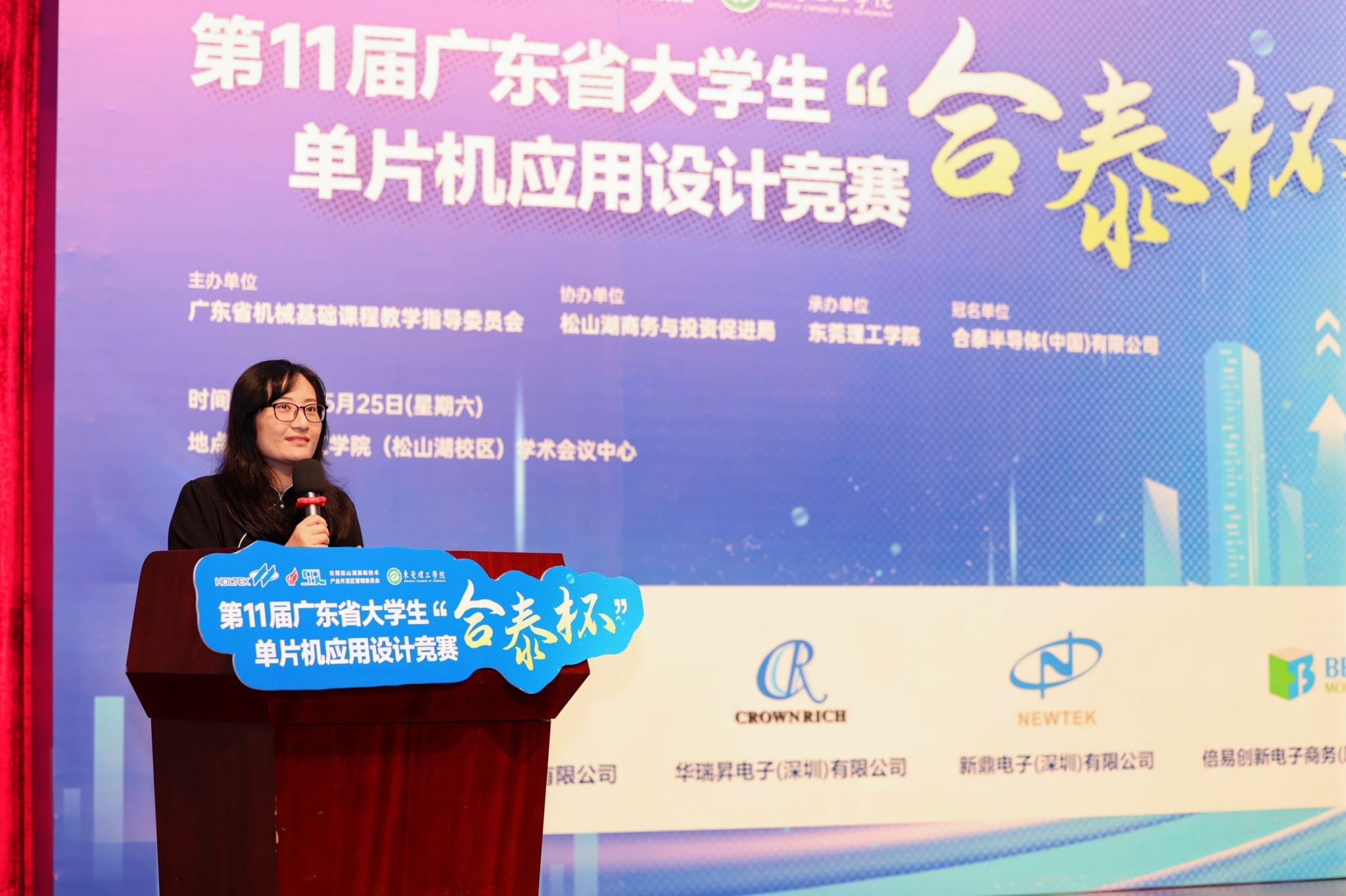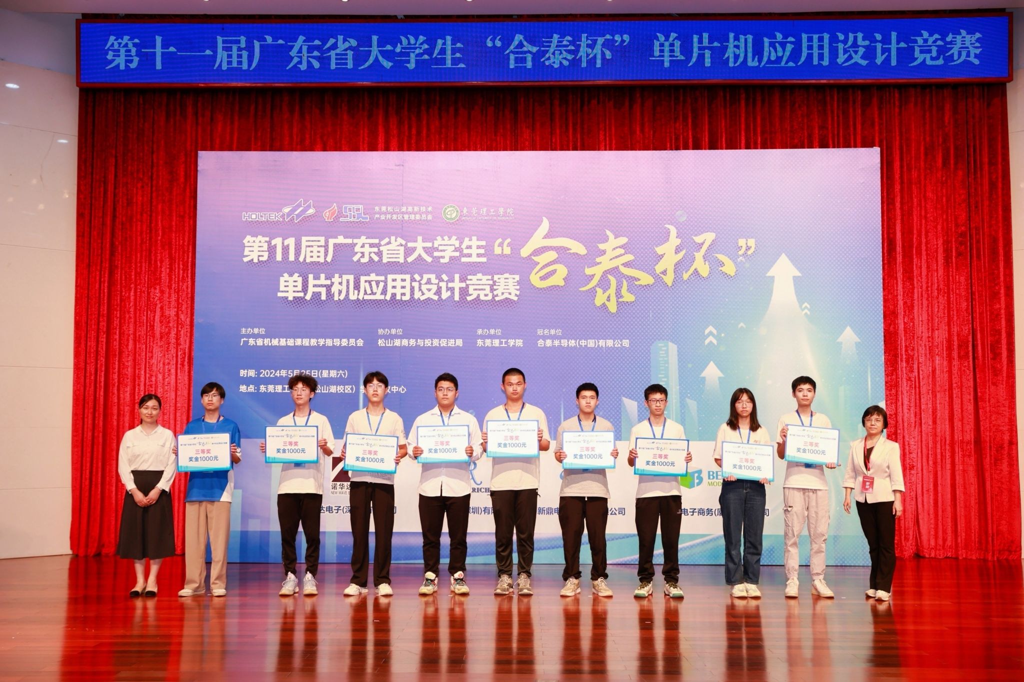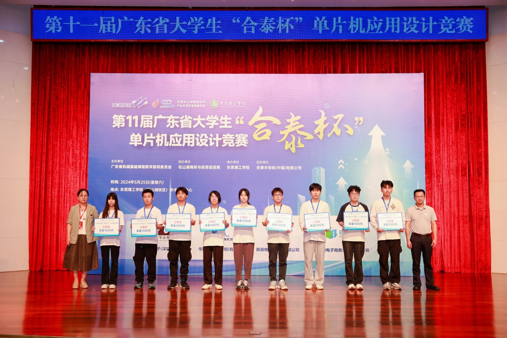 以科技创新为新质生产力蓄势赋能。2024年5月25日,由广东省本科高校机械基础课程教学指导委员会主办,yl23411永利集团承办,东莞松山湖商务与投资促进局协办,合泰半导体(中国)有限公司冠名,诺华达电子(深圳)有限公司、华瑞电子(深圳)有限公司、新鼎电子(深圳)有限公司、倍易创新电子商务(厦门)有限公司赞助的第十一届广东省大学生“合泰杯”单片机应用设计竞赛决赛在yl23411永利集团松山湖校区学术会议中心顺利举办。