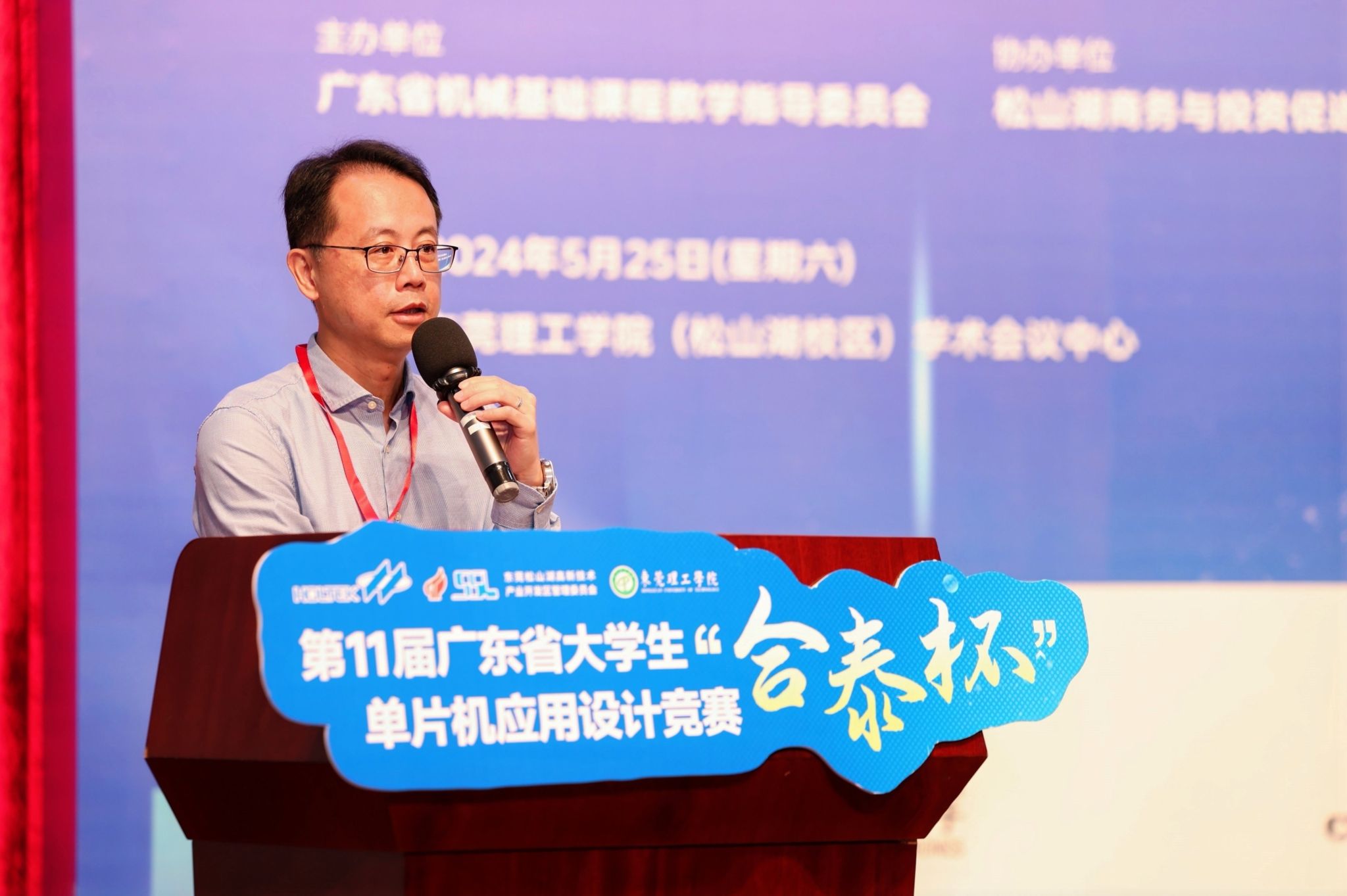 李修铭先生代表赞助商致辞,李先生对参赛选手们的勇气、创新和实践精神表示赞赏,希望这项比赛吸引更多的学子投入到单片机的应用与实践中,为单片机的创新发展做出贡献。