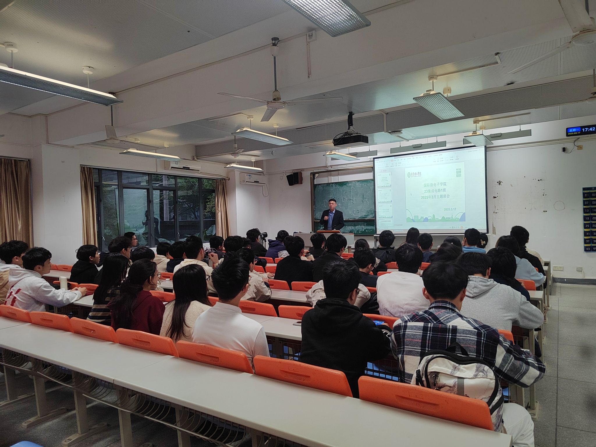 为扎实推进2025届毕业生就业工作,帮助毕业生掌握就业形势、熟悉毕业就业流程,3月20日,国际微电子学院召开2025届“追芯计划”就业推进工作会议。学院党委副书记翁炎泉、毕业班辅导员陈亚莉及全体2025届毕业生参加会议。 毕业班辅导员陈亚莉老师主要围绕...